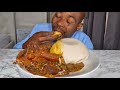 تحدي اللقيمات الكبيرة حساء أو حساء الفوفو والأوك رو مع سمك النازلي أو سمك النازلي العملاق مأك